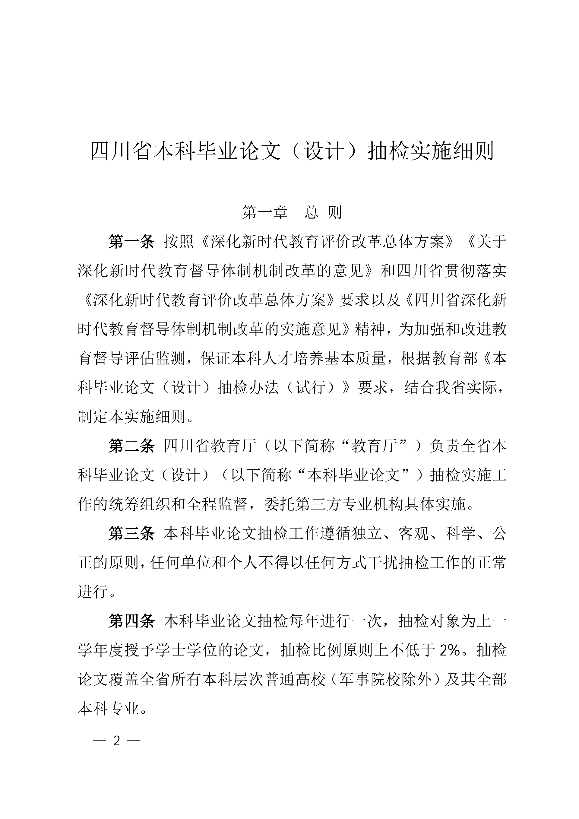四川省教育厅 关于印发《四川省本科毕业论文(设计)抽检 实施细则》的通知