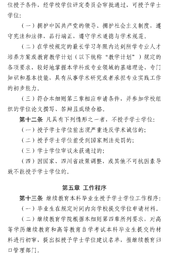 成都信息工程大学继续教育本科毕业生学士学位申请及授予工作细则
